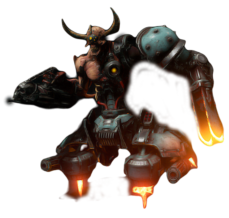 Tras un experimento de necrorregeneración se consiguió reconstruir a estos demonios, y como pasó con el antiguo Ciberdemonio, las partes que faltaban a los Cazadores Infernales se suplantaron por alta tecnología, lo que hace que estas bestias sean aun mas peligrosas.