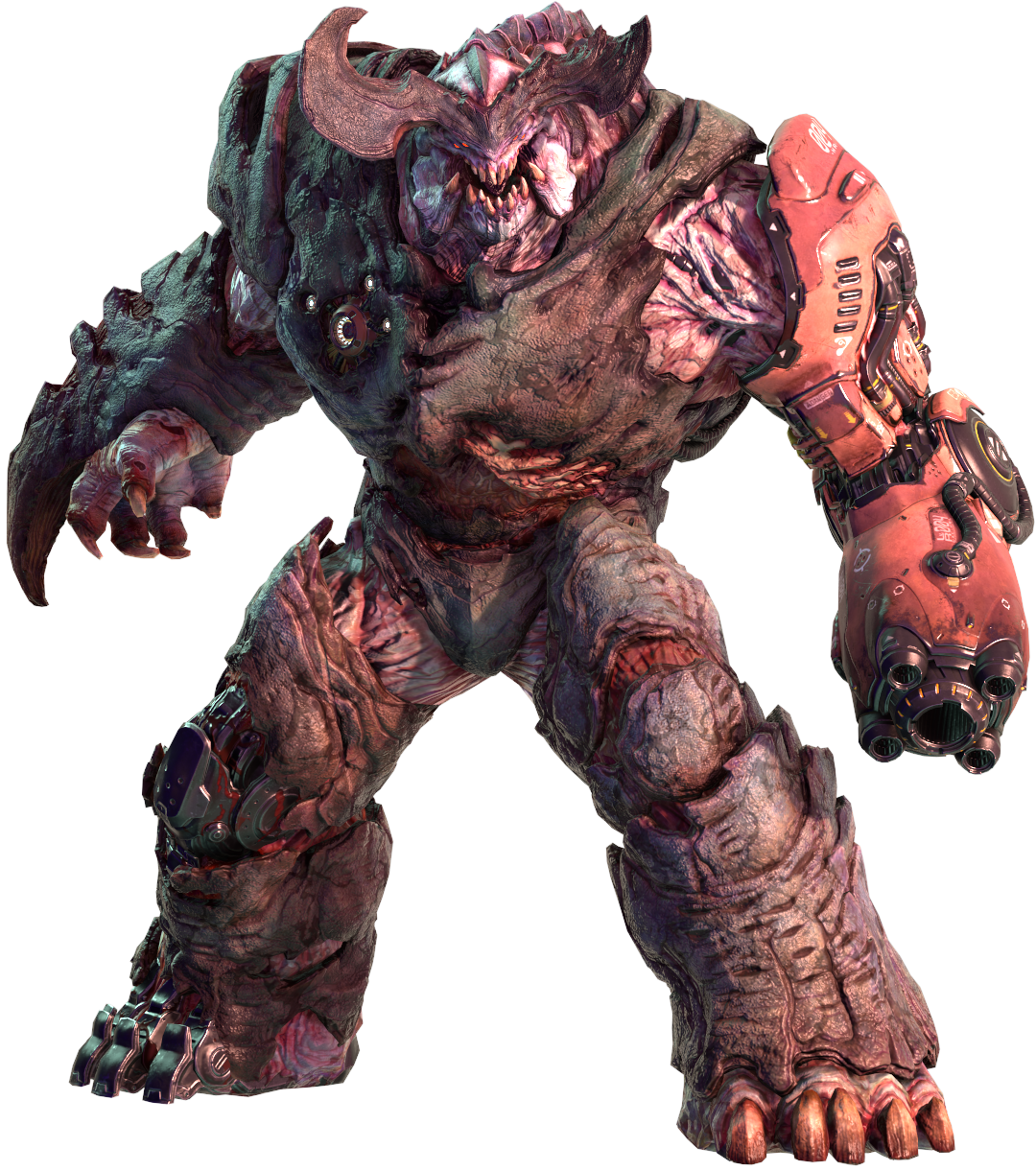 El resultado fue el nacimiento de este ser, que se mantiene con vida gracias al acumulador ARGENT que posee en su torso, el cual lo hace prácticamente imparable al recuperarle de cualquier estado tras ser derrotado. Esta capacidad hizo que el demonio fuera incontrolable y enormemente agresivo, por lo que los miembros de la UAC procedieron a encerrarlo en una cámara permanentemente, sacrificando en el acto a uno de sus compañeros para que actuara como cebo para la bestia.